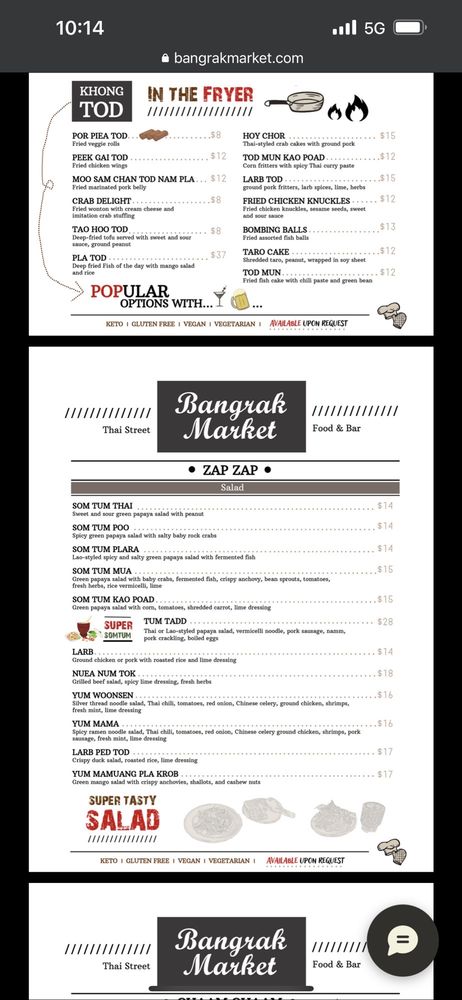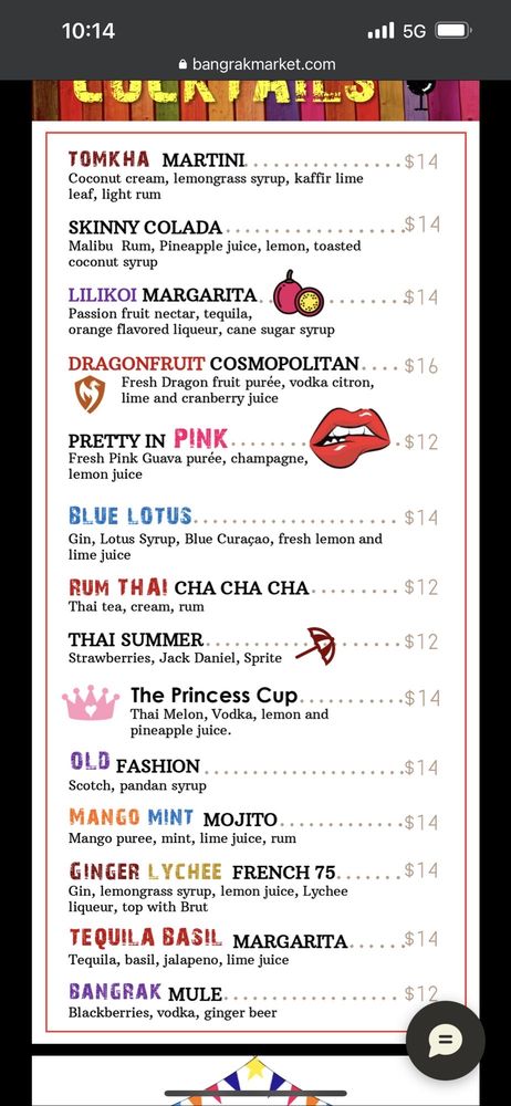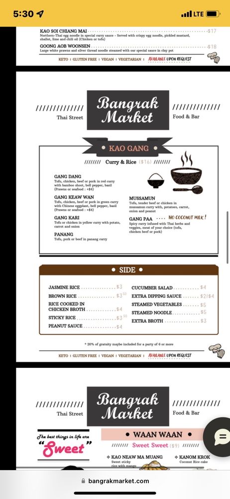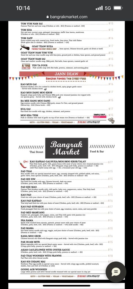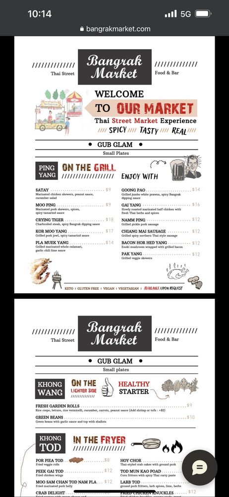 Introducing the menu at Bangrak Market, a vibrant Thai tapas and small plates bar in Seattle's Belltown area. With a lively atmosphere reminiscent of a bustling Thai marketplace, this restaurant offers a diverse selection of dishes bursting with authentic flavors. Standout items include the Moo Ping pork skewers, boat noodle beef soup, and the popular pad thai with shrimp. Customers rave about the generous portion sizes, flavorful curries, and the must-try mango mint mojito. The restaurant's unique decor and friendly service add to the overall experience, making it a top choice for those seeking a taste of Thailand in the heart of Seattle. Don't miss out on their daily Happy Hour specials and extensive cocktail menu for a truly memorable dining experience.