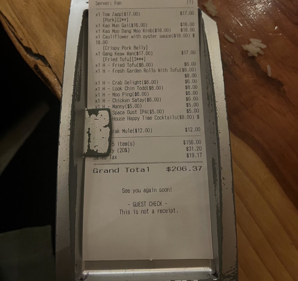 Slowly roasted marinated half chicken with fresh Thai herbs and spices.